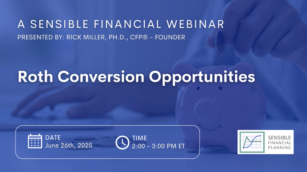 In this webinar, Sensible founder Rick Miller will share an updated approach to evaluating Roth conversion opportunities and outline the key factors to consider. He’ll also explore the complexity of fully assessing whether a conversion might make sense for your financial plan and how large it should be.